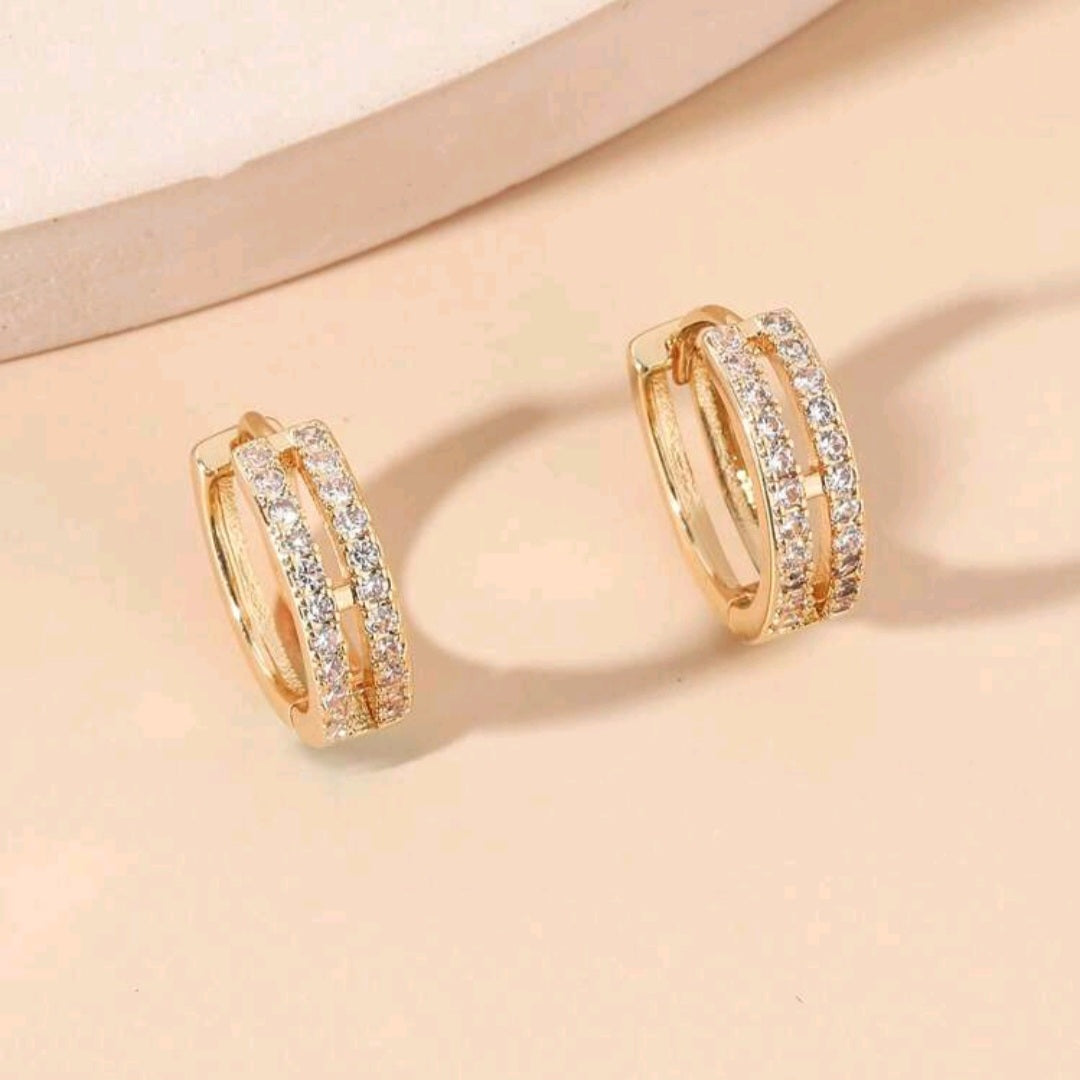 Delicate yet radiant, these double-row cubic zirconia huggie earrings are designed to catch the light with every movement. A timeless gold-tone finish and refined sparkle make them perfect for everyday elegance or special moments.